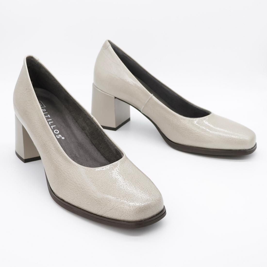 Zapato salón con tacon alto, fabricado por la marca Pitillos. Es un modelo en piel charol de la mejor calidad, trae una plantilla acolchada y un piso antideslizante.