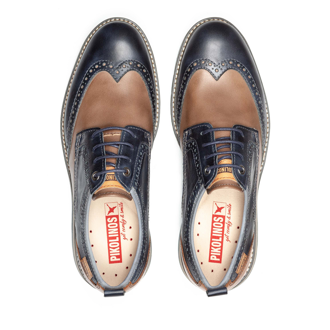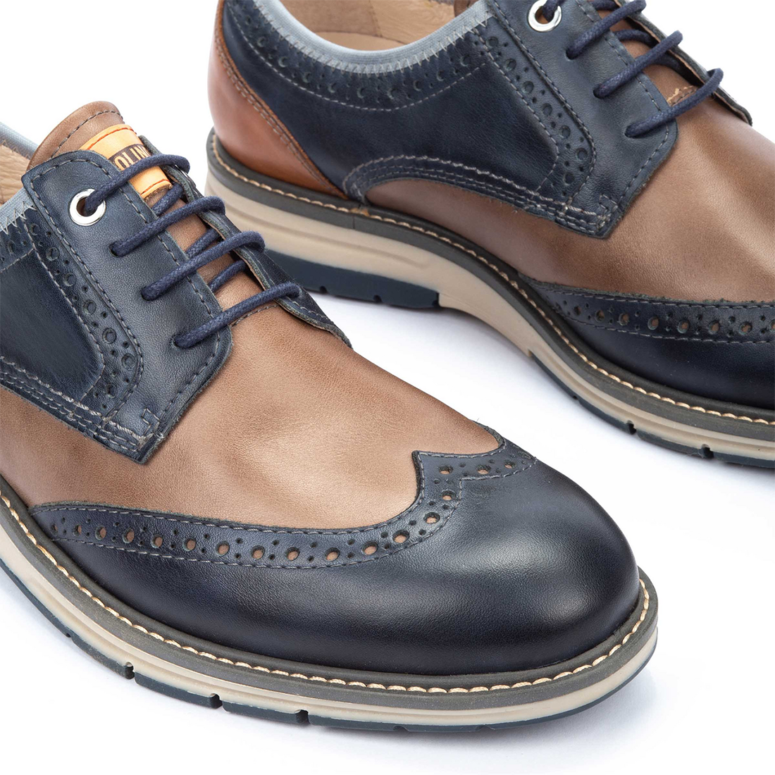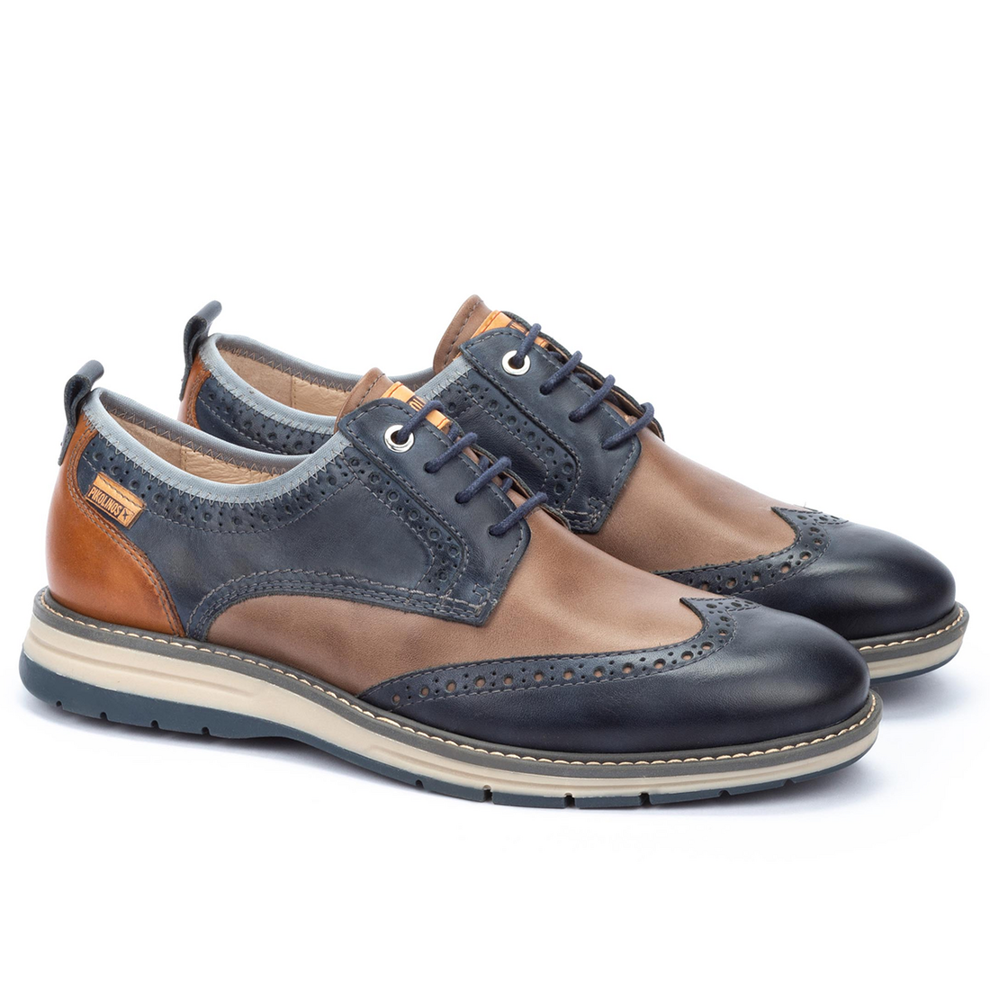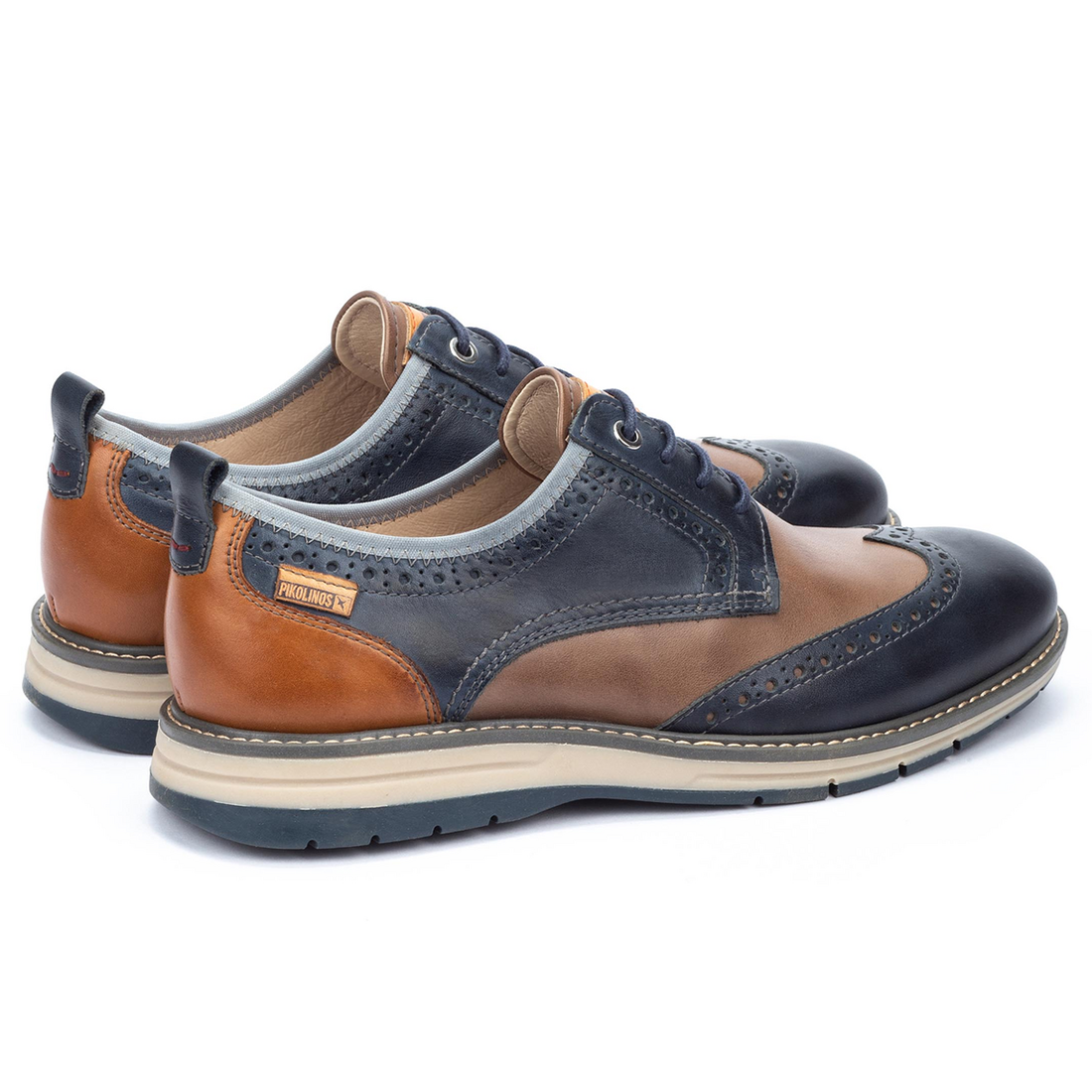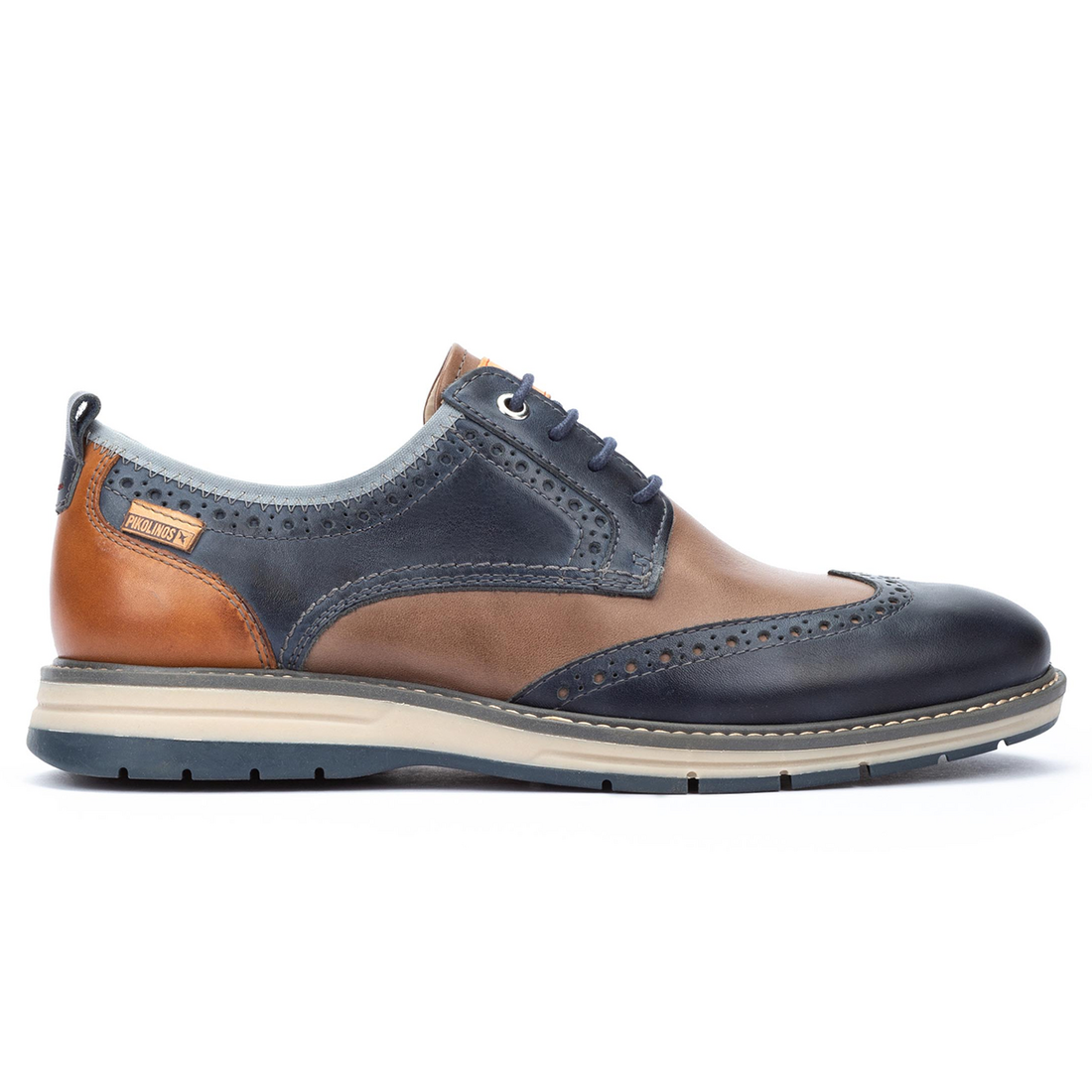 Zapato blucher en piel de la marca Pikolinos. Fabricado en paneles de varios colores que lo convierten en un zapato con carácter, elegante y cómodo.