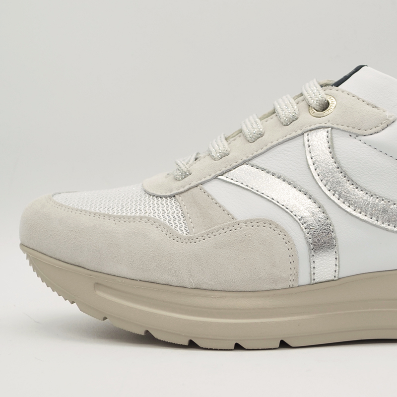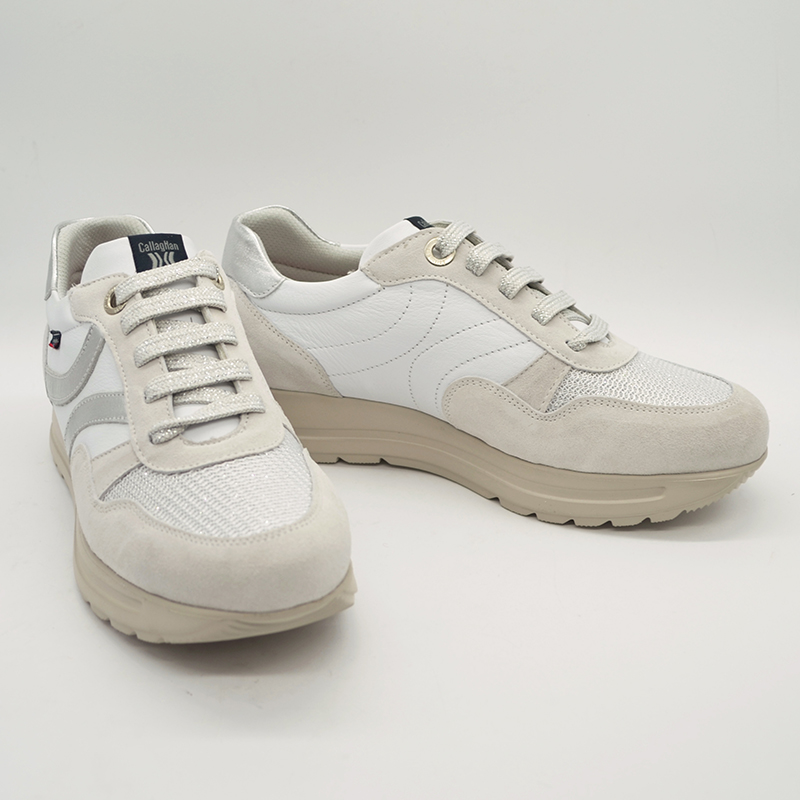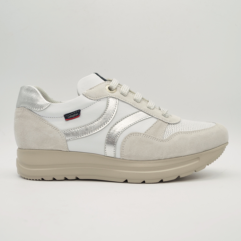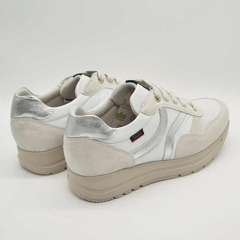 Zapato de estilo Sport del fabricante Callaghan. Es un modelo tipo Sneakers con algo de plataforma que combina la piel lisa con piel fantasía y textiles especialmente escogidos para este modelo.