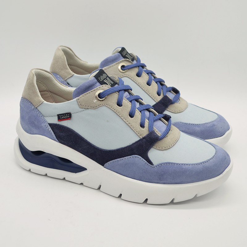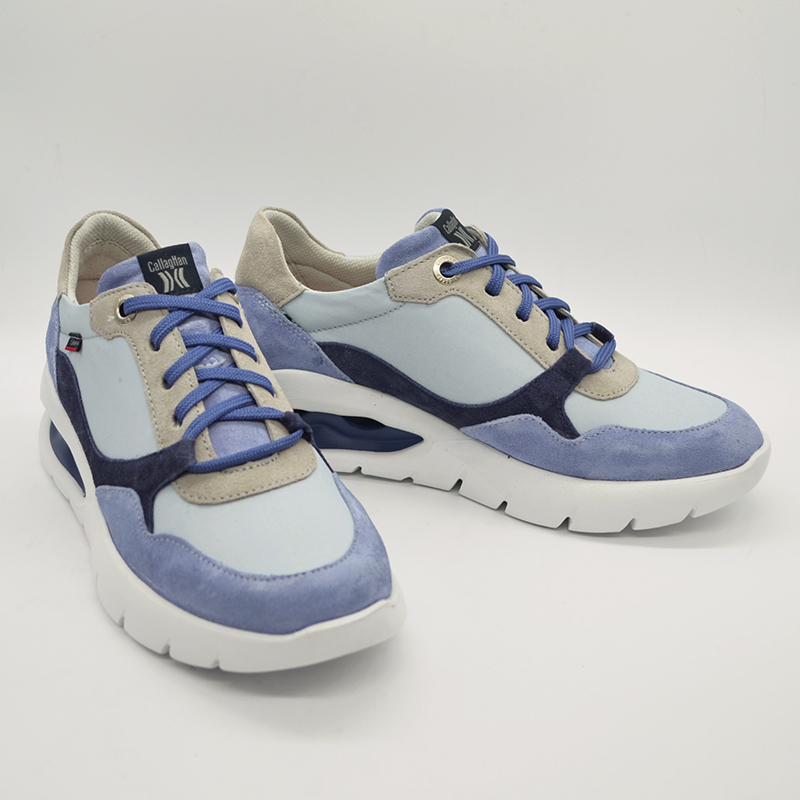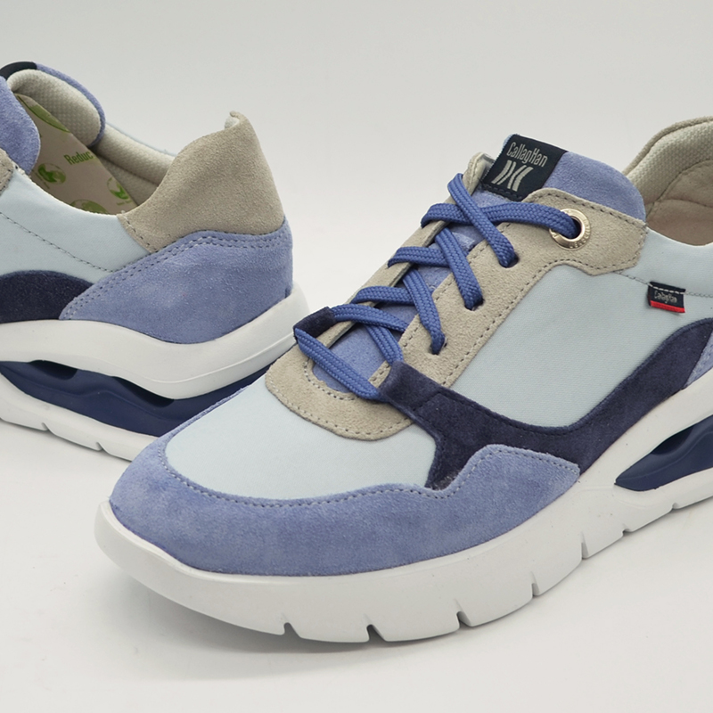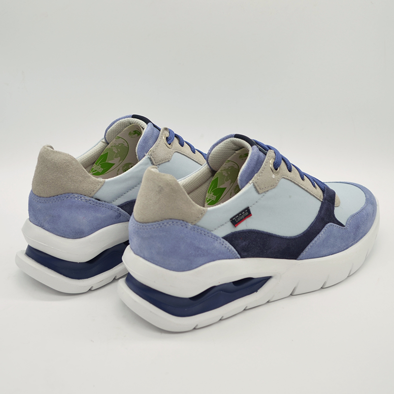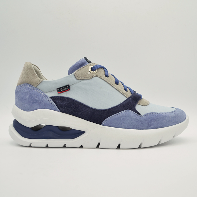 Zapato elaborado con materiales de gran ligereza y flexibilidad que favorece la amortiguación. Piel de Ante tratada con el sistema de hidrofugación 3m que hace resbalar al agua y a la suciedad.